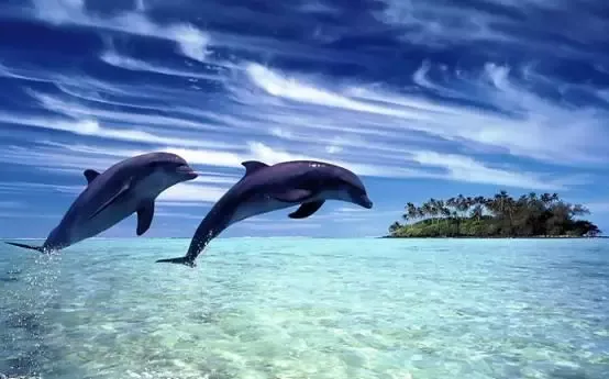 落日海豚之旅是马尔代夫除了潜水之外的特色项目。夕阳相伴,乘坐多尼船出海,成群结队的粉红色海豚为你导航,可以最近距离欣赏到它们娇俏可人的姿态。随 着第一条海豚飞快地跃出海面,仿佛攀比一样,大大小小的海豚会纷纷跃出水面,画出一条条优美的曲线,引来一阵阵惊叫。在马尔代夫,你可以纯粹地感受到人与 动物的贴近,感受大自然赐予的快乐!