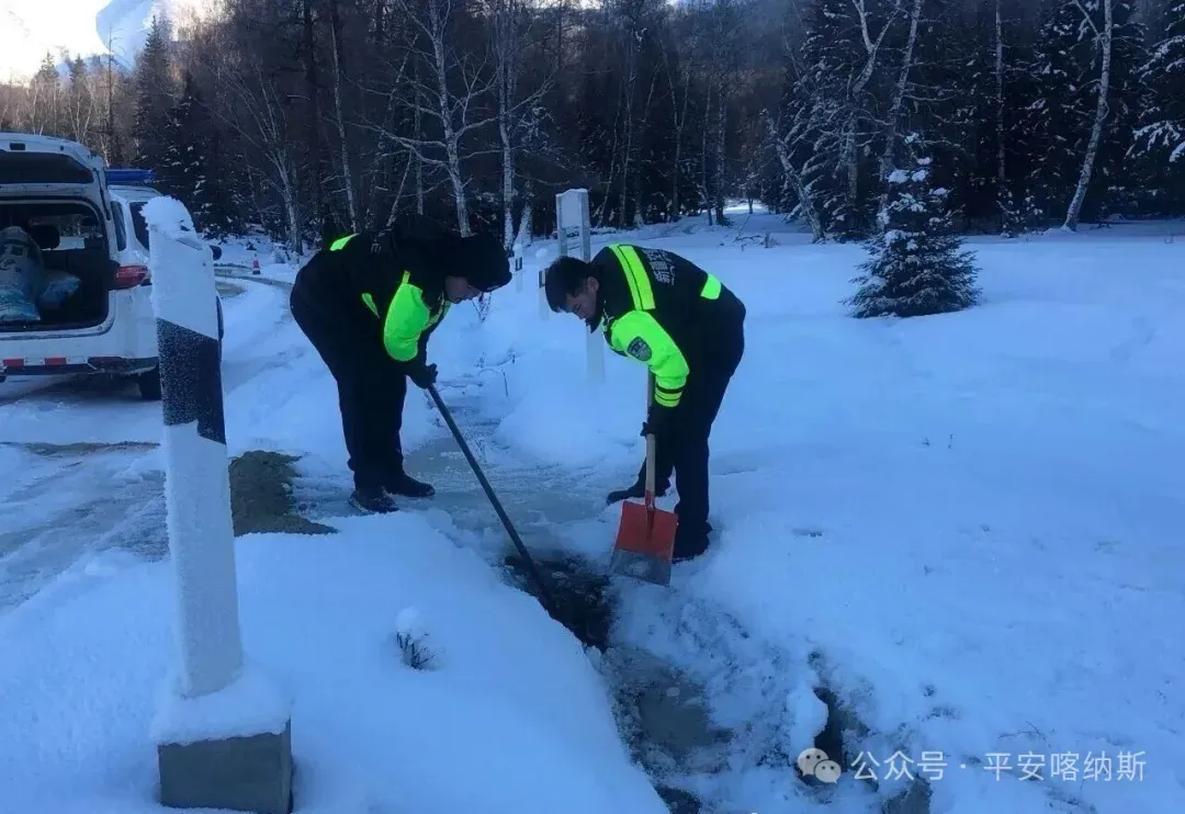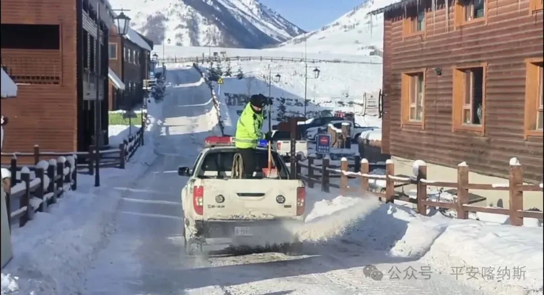 喀纳斯景区公安全力守护冬季辖区道路通行安全,保障游客与群众出行平安。