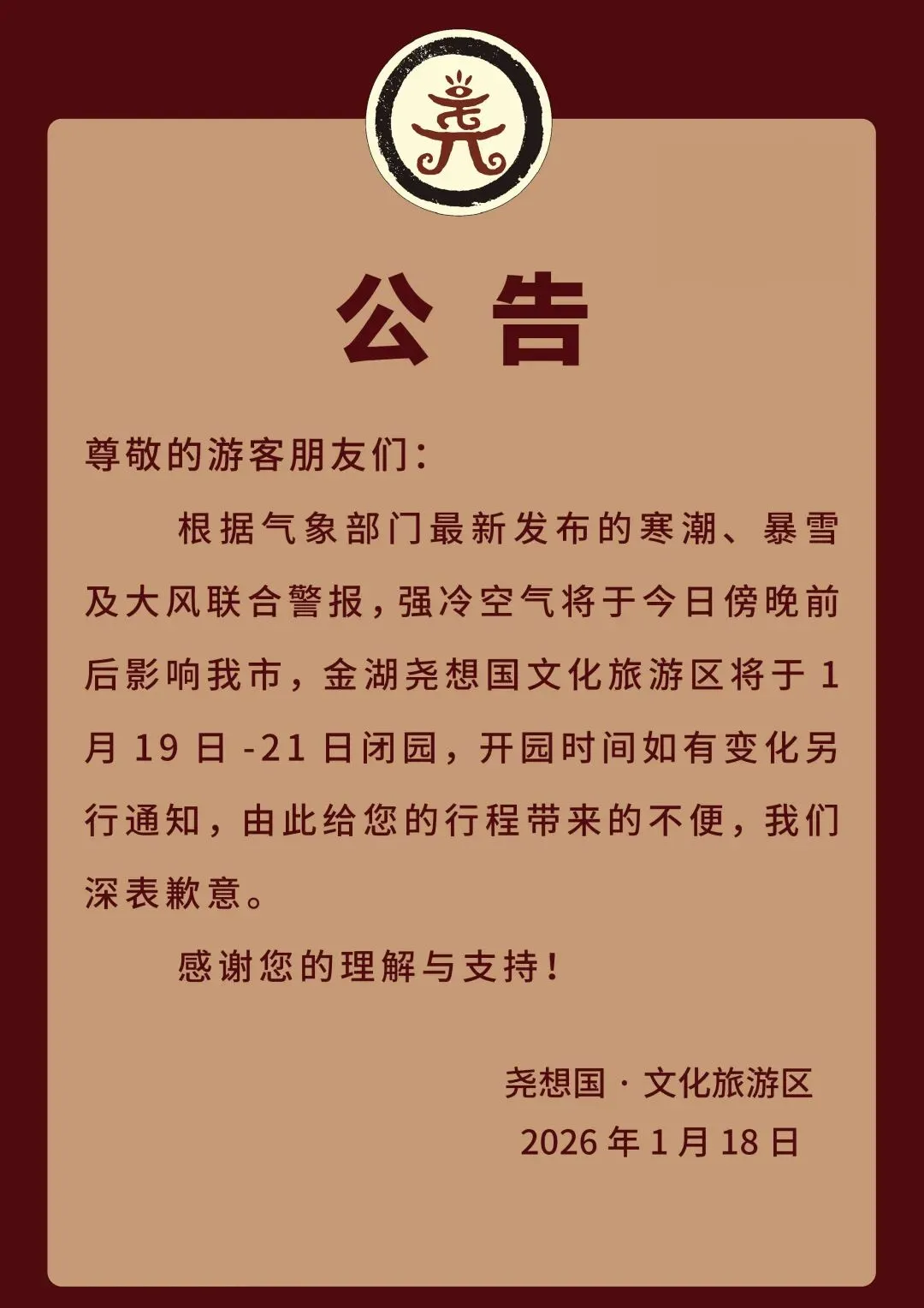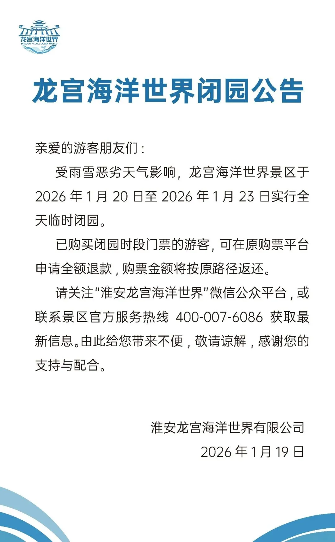 淮安两家景区发布消息:暂停营业!闭园!