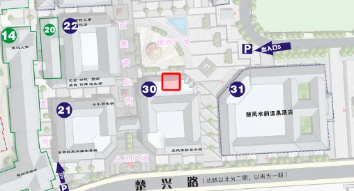 商铺位置:23号楼一层-西楚大街(图中标红区域)