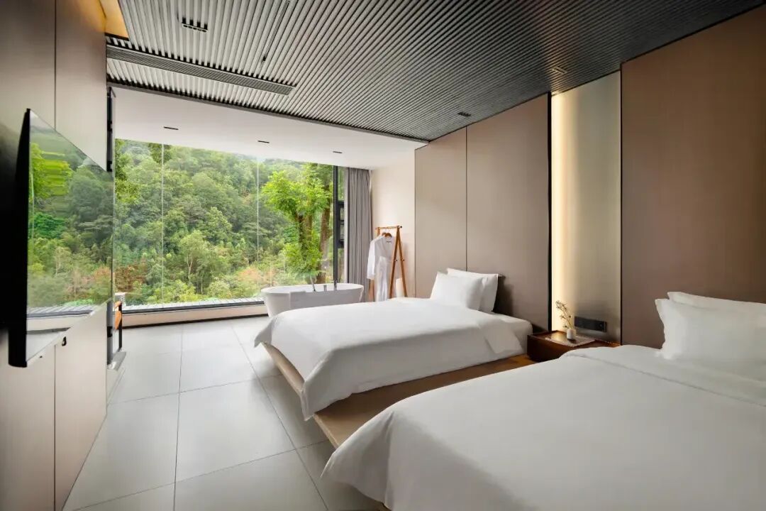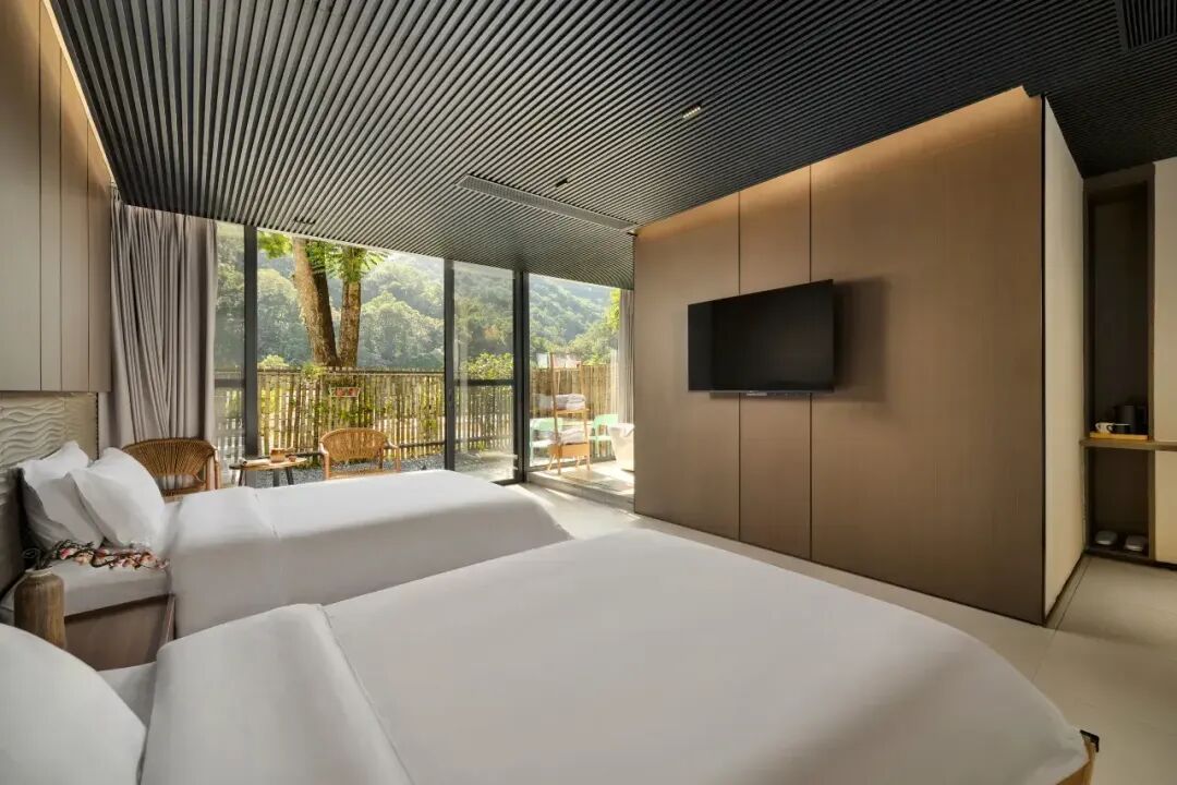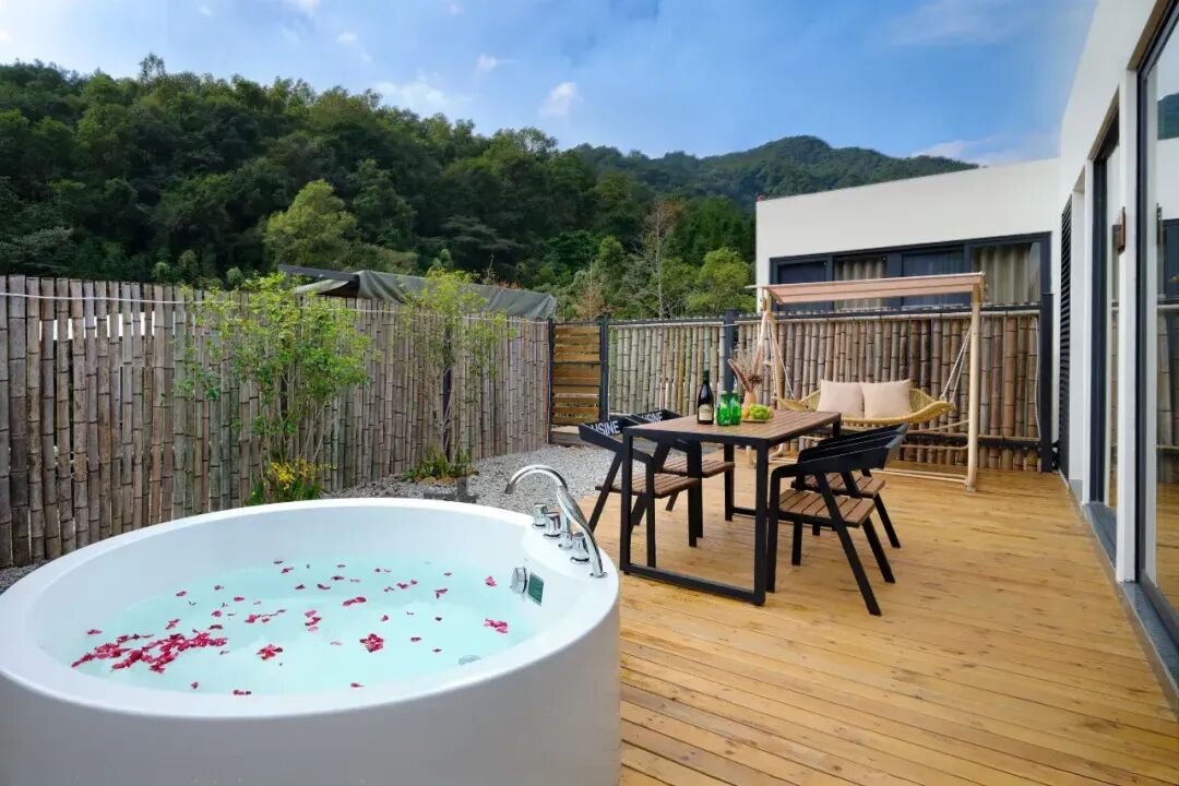 山溪语民宿坐落于惠州龙门水帘洞风景区附近,依山傍溪。这里拥有整片原始森林,户户可观山听水,步步皆是风景。民宿将城市的舒适融入自然,简约设计引景入室,客房区距离天然溪流仅一步之遥,推窗见云雾青山,卧听雨落潺潺。民宿周边遍布众多清澈溪流与原始森林步道,可徒步探秘、可户外登山,可溯溪玩水,尽享大自然之趣。园区配备餐厅、烧烤场、无边泳池、棋牌室与KTV等完整设施。依托周边优质的户外拓展资源,是企业团建、朋友聚会、亲子度假的理想之地。 龙门·山溪语 豪华房 平日 480元/间 周末 580元/间 泡池房/270度浴缸房 平日 580元/间 周末 680元/间 包场17房 平日 6880元 周末 7880元 套餐包含: 房价含双早,泳池,溯溪等 预约热线【15918150864】 扫下图加微信,了更多详情
