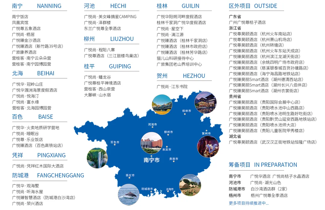 广西旅游发展集团旗下饭店、酒店项目分布: