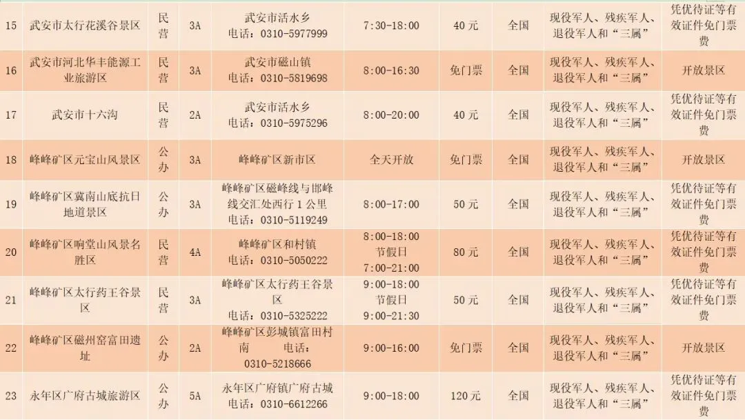 1.全国退役军人和“三属”持优待证享受首道门票免费;