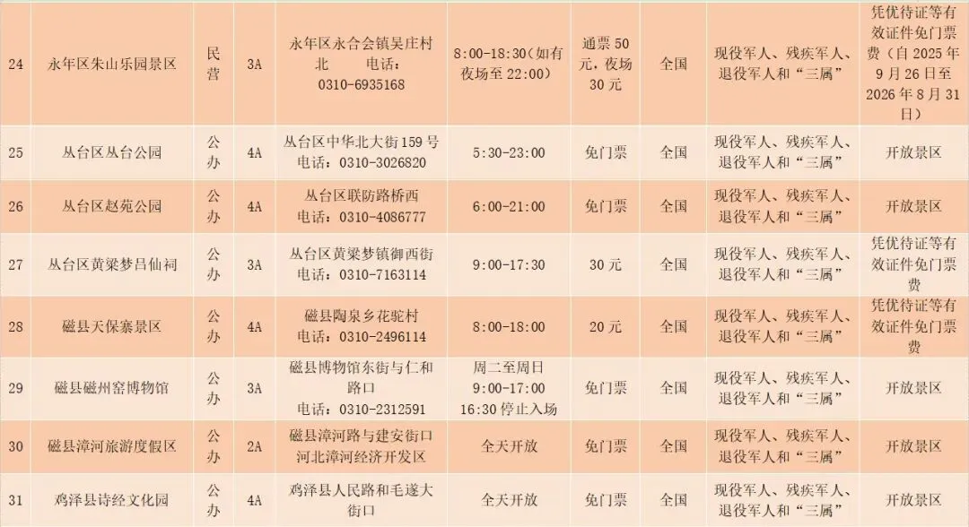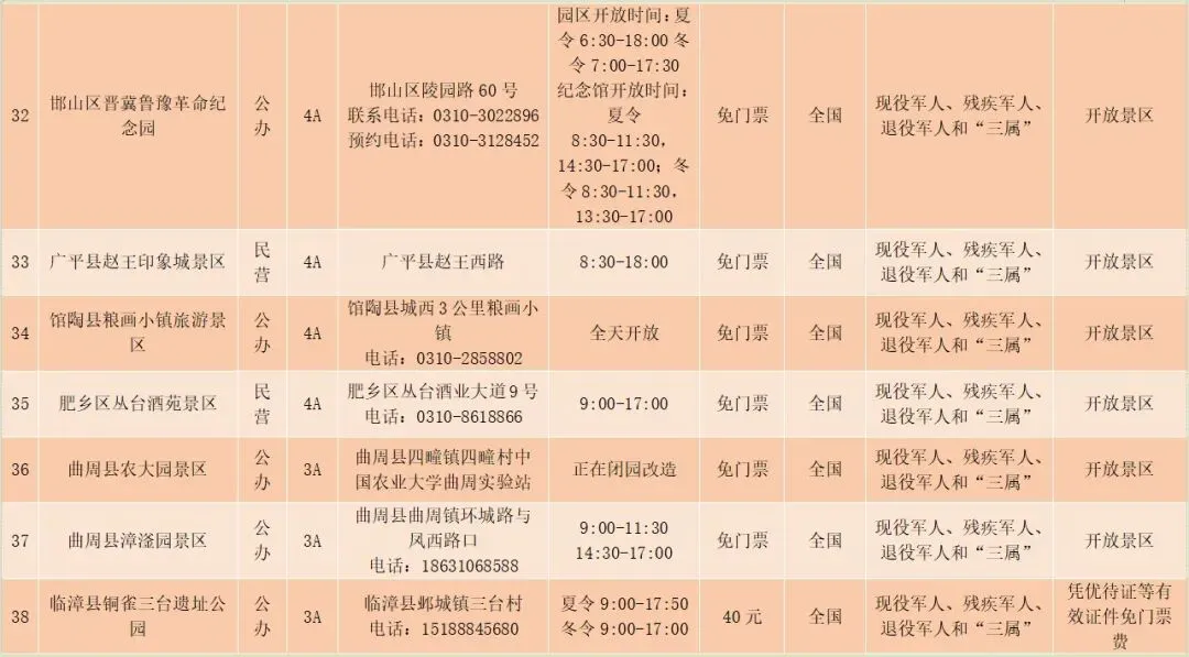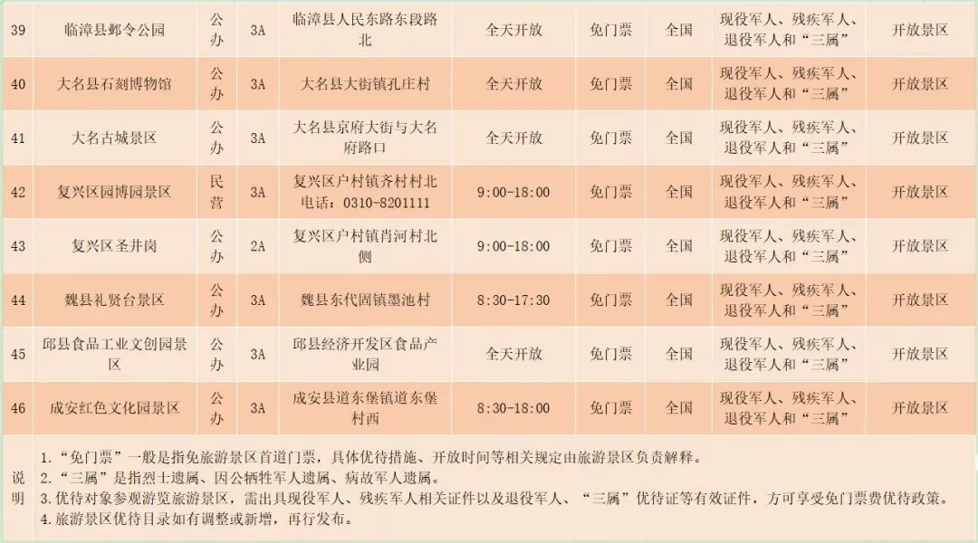 3.一至六级残疾军人全年免费入园,其中一至四级残疾军人可带1名陪护人员全年免费入园。