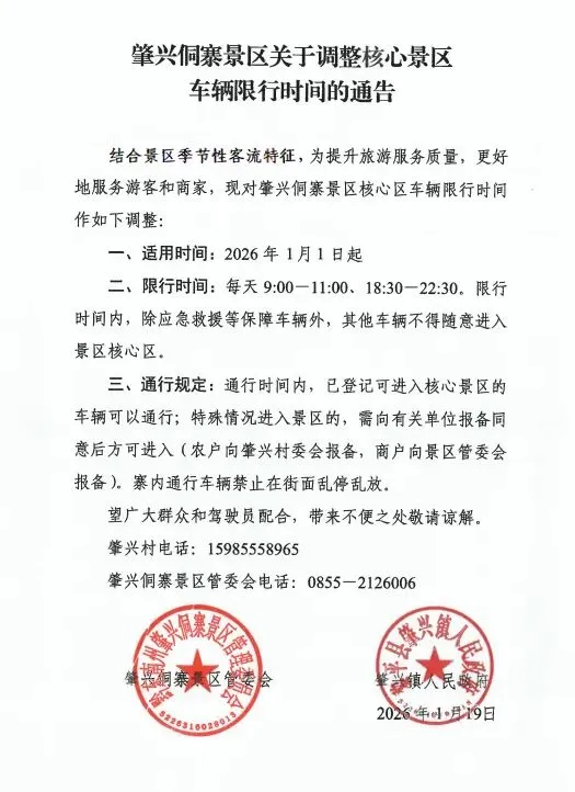 您现在的位置是:首页 > 国内旅游目的推荐 > 正文 国内旅游目的推荐 肇兴侗寨景区关于调整核心景区车辆限行时间的通告 admin2026年01月19日 22:16:03国内旅游目的推荐1 肇兴侗寨景区关于调整核心景区车辆限行时间的通告2026笙歌迎侗年,肇兴邀您赴一场千年民俗之约|这天侗家人过年啦!11月21日—23日欢迎来肇兴侗寨过月吔大歌节!“肇兴侗寨”全国排名第一! 转载请说明来源于"旅荐网",部分内容转载自网络,如有侵权请联系qlwl@foxmail.com删除 本文地址:https://www.15386.cn/post/83888.html 上一篇 景区免门票、酒店交通有优惠,退役军人专属优待清单又上新! 下一篇 1月24日【钦州出发】418元 纯玩景区0自费金秀武宣品质2日游: 盘王界莲花山含索道电梯+武宣葵花+瑶族博物馆+山水瑶城 相关文章 云梦山景区1月19日12点临时闭园公告 河南雨雪进入最强时段!多景区临时闭园 大雪来袭!谷城一景区临时闭园,已有多所学校停课! 摘草莓!泡温泉!深圳1月19日-25日景区特惠活动推荐! 1月24日【钦州出发】418元 纯玩景区0自费金秀武宣品质2日游: 盘王界莲花山含索道电梯+武宣葵花+瑶族博物馆+山水瑶城 景区免门票、酒店交通有优惠,退役军人专属优待清单又上新! 彭于晏化身“喜剧人”,寂静岭变成“5A景区”,本周影院有看点 2026年天山天池景区冰封雪湖暨冰上项目启动仪式圆满举行 南京怎么样?我在夫子庙景区学到了获客大法 紧急!江门这一景区上演“黄金四分钟”生死救援! 发表评论 取消回复 评论列表 这篇文章还没有收到评论,赶紧来抢沙发吧~