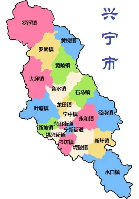 兴宁市下辖3个街道、17个镇:兴田街道、福兴街道、宁新街道、永和镇、新圩镇、罗浮镇、罗岗镇、黄槐镇、龙田镇、石马镇、宁中镇、径南镇、坭陂镇、水口镇、黄陂镇、合水镇、大坪镇、叶塘镇、新陂镇、刁坊镇。市政府驻兴田街道。