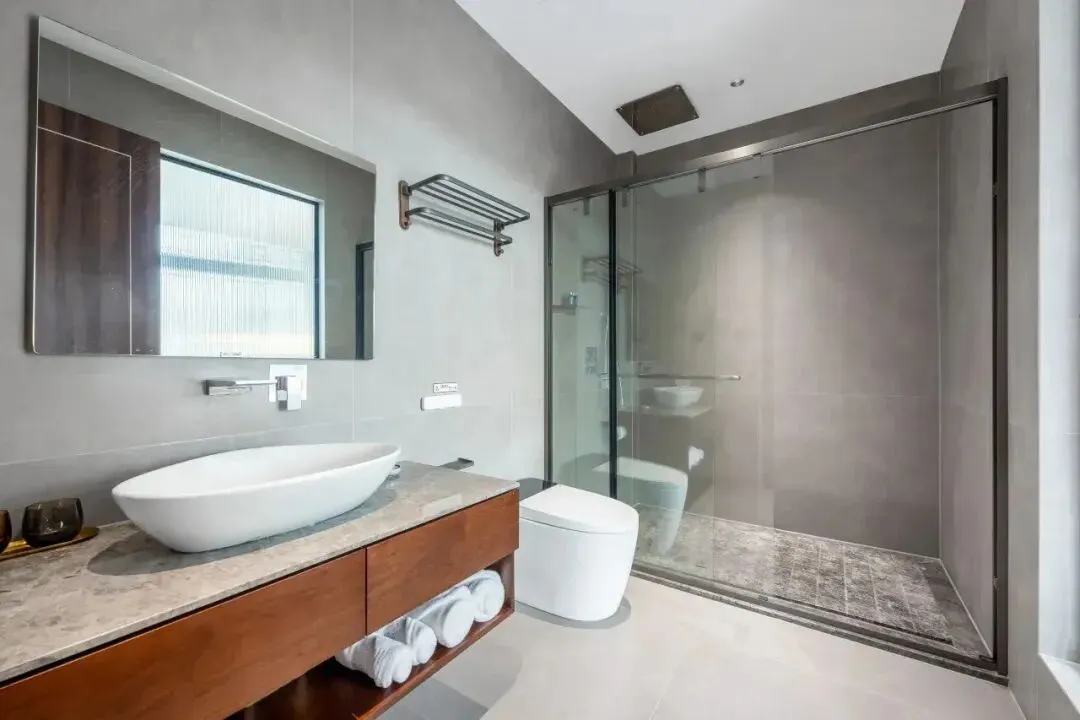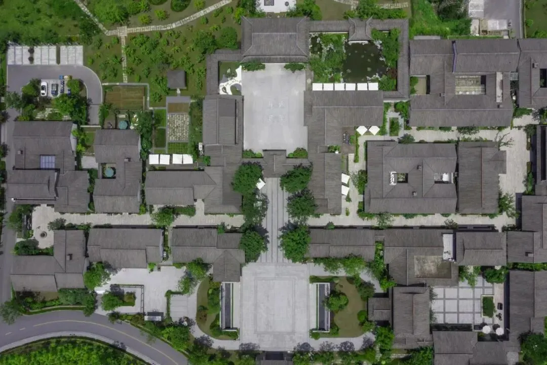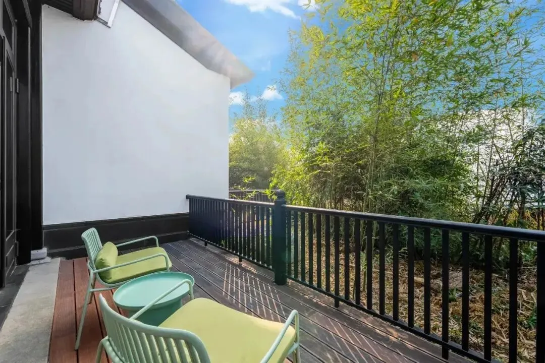 酒店分两期打造,一期17间客房以“新中式复古”为魂,青灰色瓦片、木质格栅、素色织物,处处透着克制的高级感;二期12间则转向“简约明快”,以原木与留白诠释现代禅意。