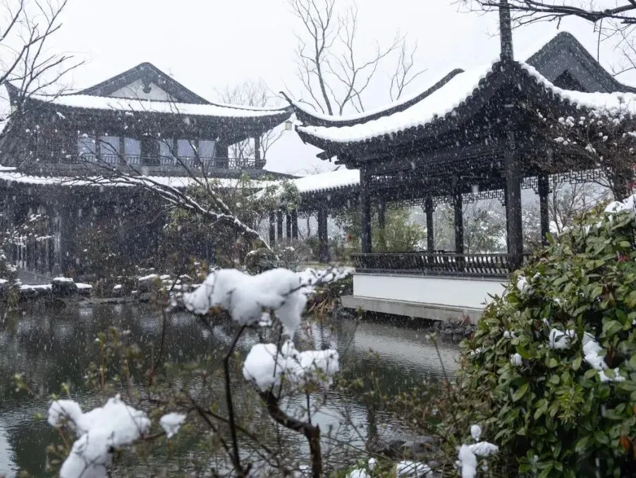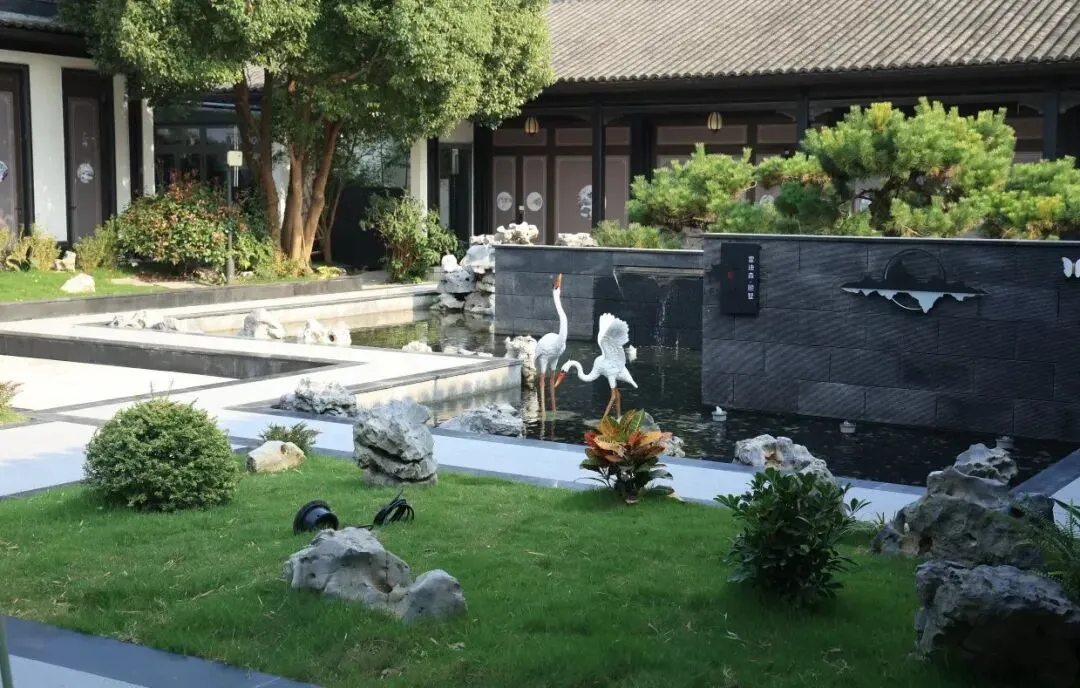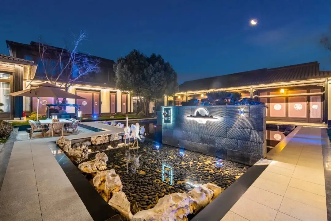 晨起推窗,可见锦鲤戏波、泉石生烟;暮色四合时,檐角悬挂的灯笼次第点亮,光影在粉墙黛瓦上流淌,恍若步入《园冶》中的写意之境。