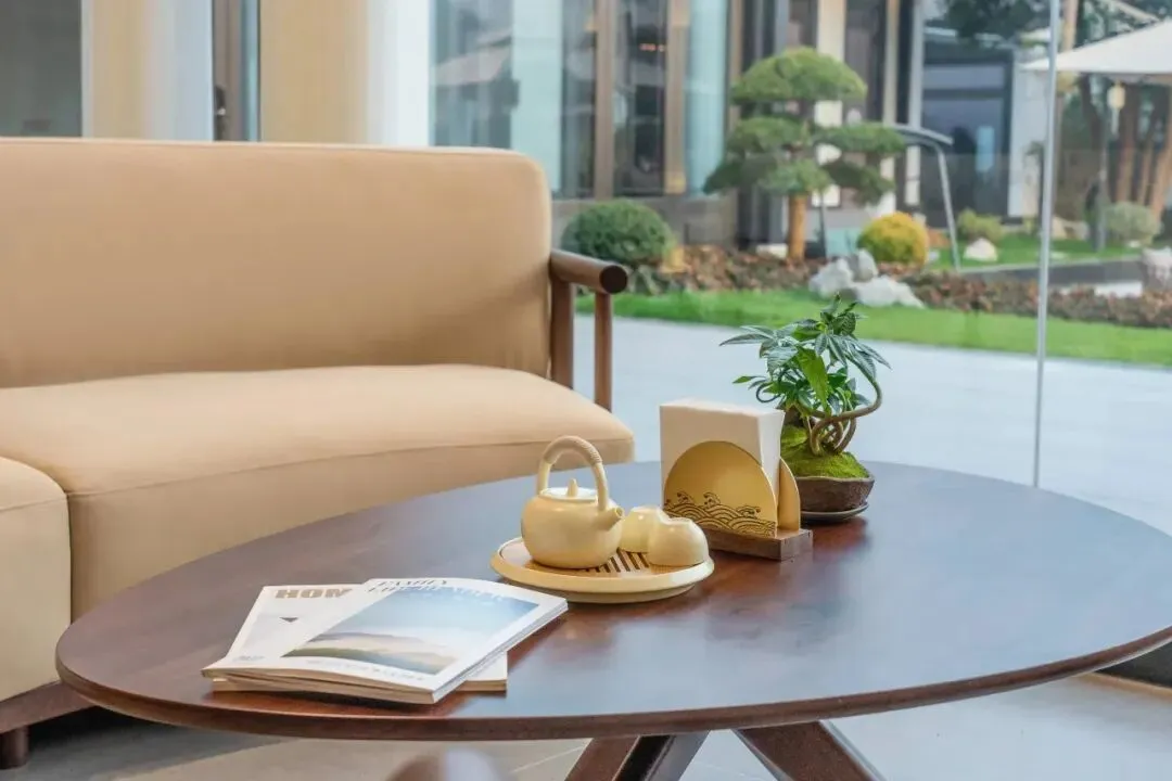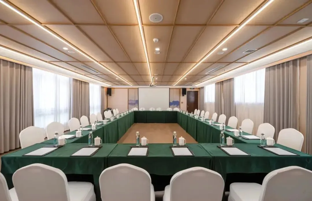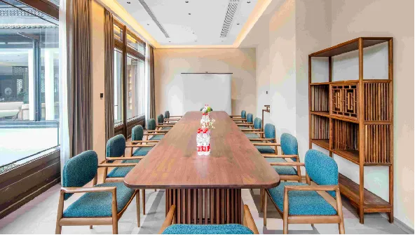 五大公区各具风韵:茶室临水而建,可焚香煮茗,静听风过竹梢;书斋内典籍满架,随手抽出一册,便能在藤椅中消磨半日;多功能会议室以落地窗纳景入室,让商务会议亦成诗意体验。