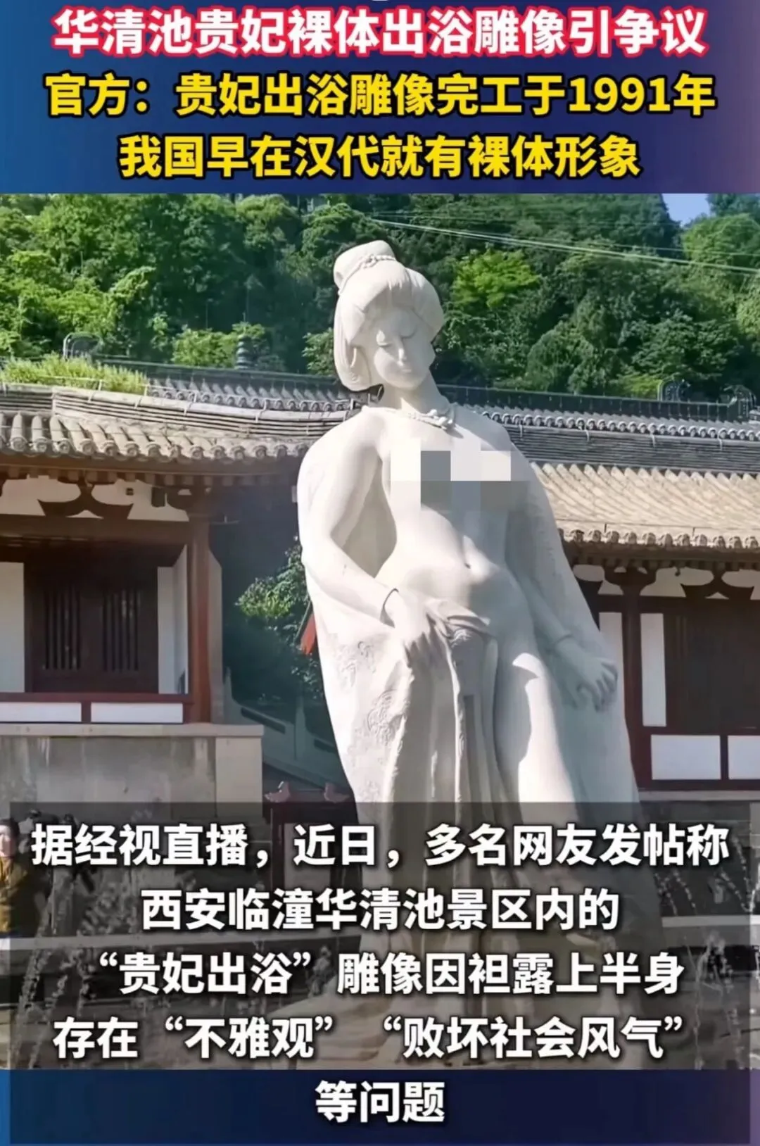 当年的新闻报道 而当时的新闻照片,也在最近的讨论中被重新翻出,作为这尊雕像伤风败俗、有辱历史人物的重要论据。 2024年,又陆续有网友吐槽贵妃雕像不雅,当时华清池工作人员回应:“代表的是沐浴的文化,有艺术审美在里面。”