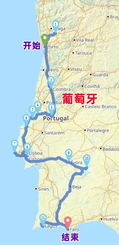 - 选择北部波尔图进,南部法罗出的路线,不走回头路,同时考虑往返廉价航空班期,降低往返交通成本