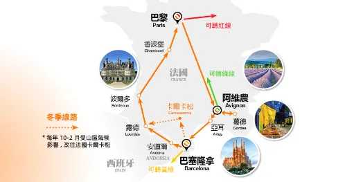 橙线:南法西班牙安道尔7日