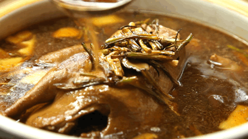 鸭肉酥烂脱骨,汤汁浓郁,味道醇厚
