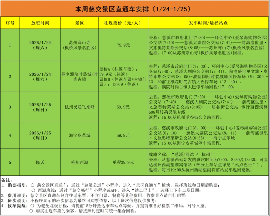 慈交景区直通车,再添2条周末休闲线路