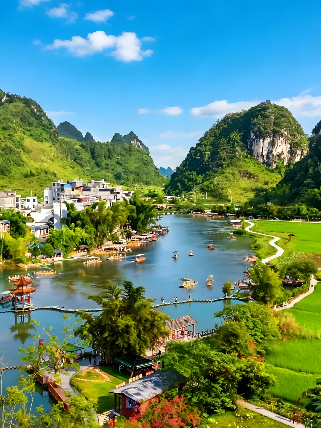 💬 网友说:“比桂林清净10倍!傍晚坐在竹筏上,风里都是稻花香~”