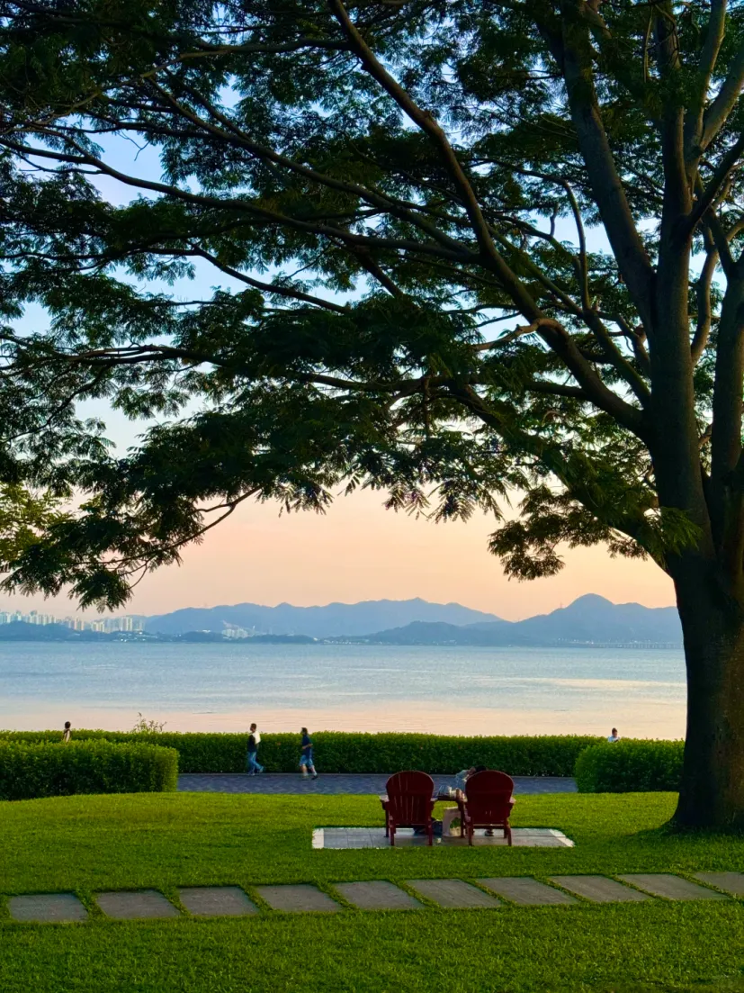 海边骑行+落日浪漫套餐,还能隔海对香港比个耶。🚇地铁:9号线深圳湾公园站D2出口