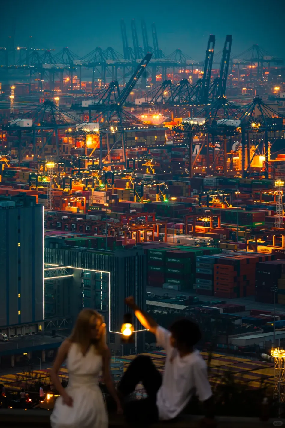 集装箱码头变身赛博夜景!长焦镜头怼过去,灯火如科幻片能量池
