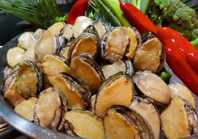 “食海鲜,到南澳”,南澳水产资源丰富,是金国最大规模的陆地养鲍基地之一。鲍鱼古称“石蝮”、“石决明”,又称“九孔螺”,肉质滑爽脆嫩、营养丰富,自古便被视为“鲍、参、翅、肚”四海味珍品之首,有可滋阴怡神功效。
