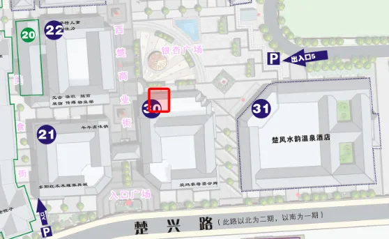 商铺位置:23号楼一层-西楚大街(图中标红区域)