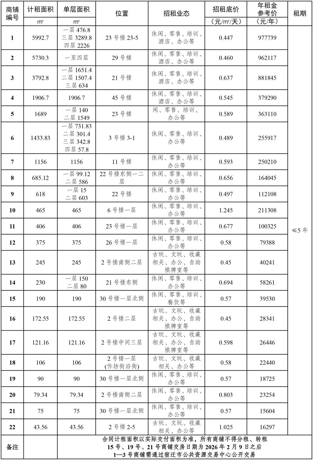根据规划,现对项王故里景区部分空置房屋进行公开招租,共22间,相关信息如下: