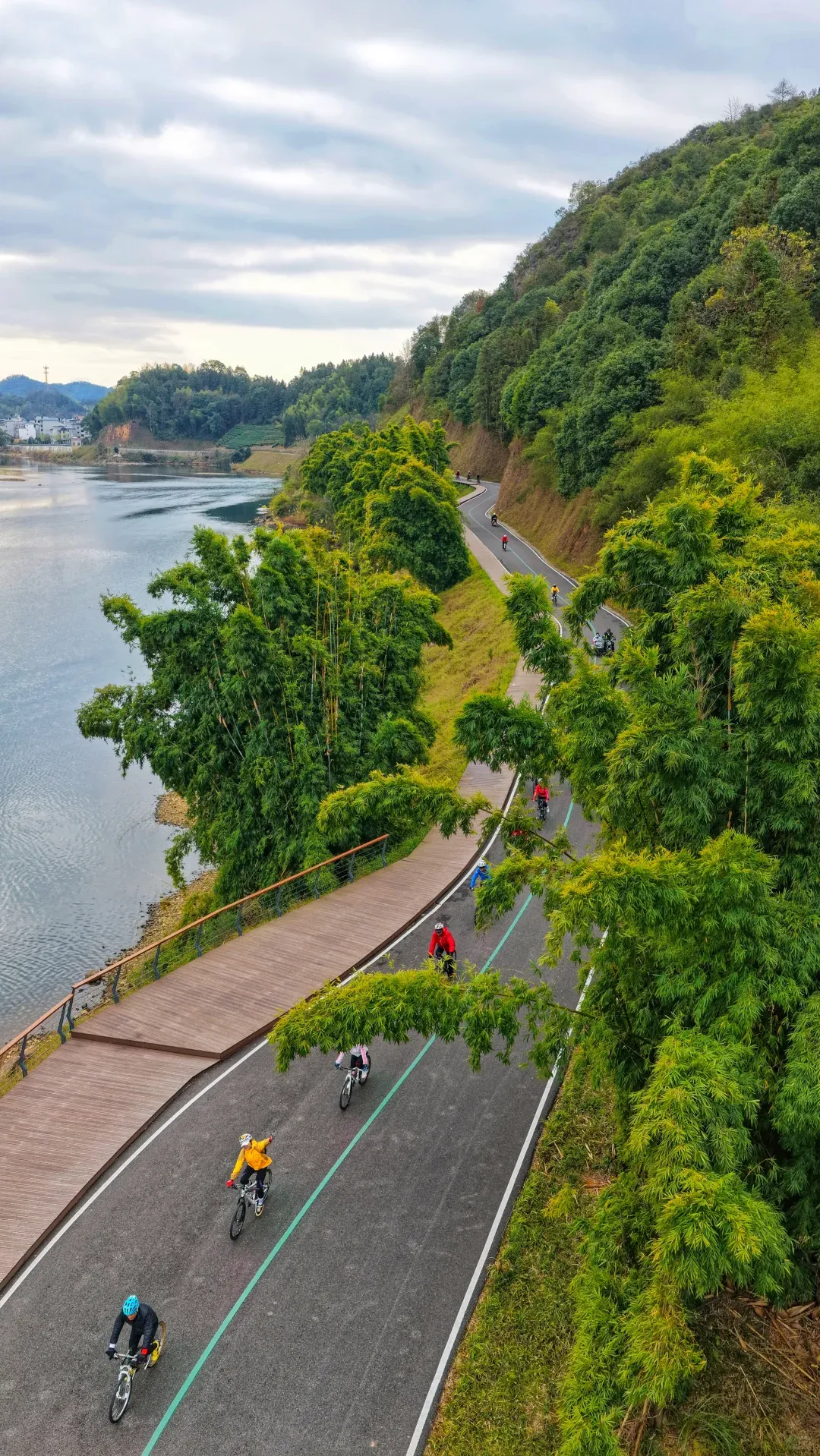 骑行时左手是连绵茶田竹海翻涌着鲜绿,右手是溪水潺潺映着天光云影,偶尔还能偶遇散落的古村落,自带千年人文滤镜。