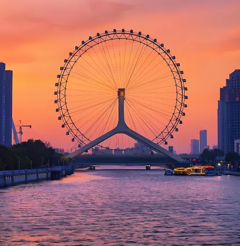 第五站:天津之眼摩天轮世界上唯一建在桥上的摩天轮,天津的地标。但我劝您别大白天去,那是浪费电。一定要傍晚去,买18:00以后的票,当座舱升至最高点,整个津城灯火阑珊,海河像一条流动的光带。情侣必打卡,单身狗慎入,容易被甜齁。票价80元起,旺季一定要提前在网上预约,现场排队能让你怀疑人生。