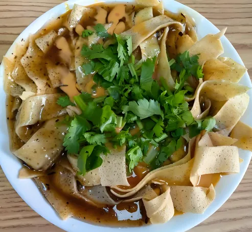 第二美食:锅巴菜(嘎巴菜)这是天津人的“黑暗料理”?不,这是神级美味!绿豆煎饼切成条,浇上浓稠的卤汁,配上麻酱、腐乳、辣油。吃起来软糯咸香,味道极其复杂又和谐。一定要去真素诚或者正味斋,这玩意儿凉了不好吃,得趁热呼噜着吃。