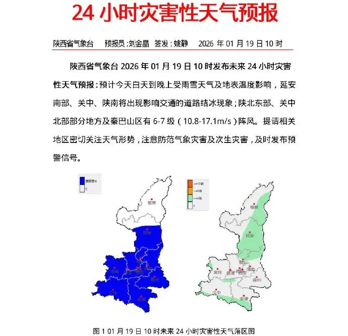 镇巴县气象台2026年01月19日11时05分继续发布道路结冰黄色预警信号:受雨雪降温天气影响,我县所有镇(街道)海拔800米以上的高山路段路表温度将降至0℃以下,预计未来12小时内可能出现对交通有影响的道路结冰,请注意防范。