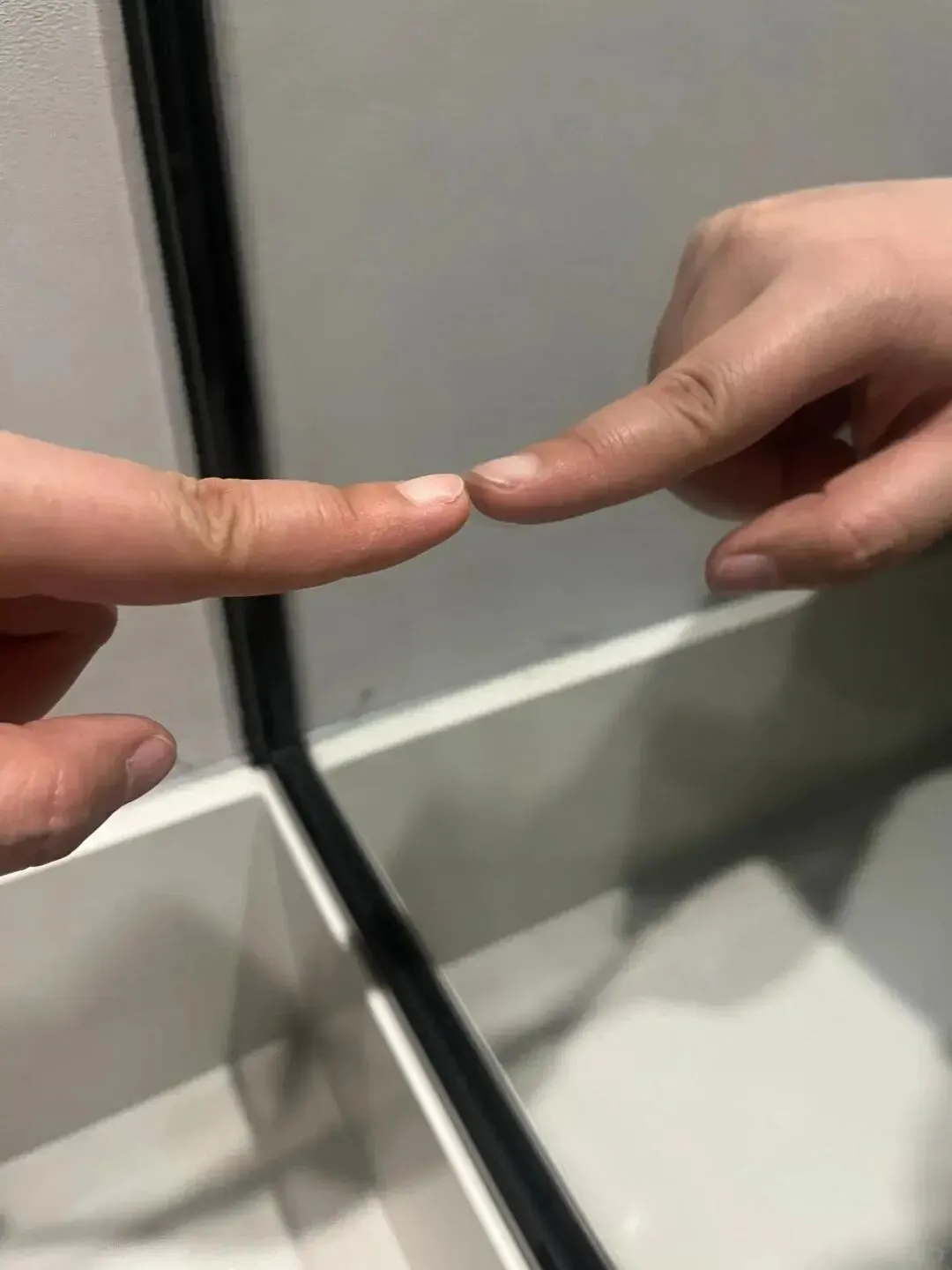 一是指尖测试:指尖贴紧镜面,普通镜子的指尖和镜像间会有小缝隙;如果完全贴合,就要警惕。