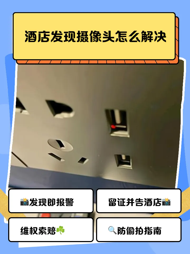 如果发现疑似偷拍设备,第一时间报警!偷拍是刑事犯罪,自己拆、移设备会破坏证据,影响维权。报警后通知酒店前台,要求封存现场,等警方来取证。