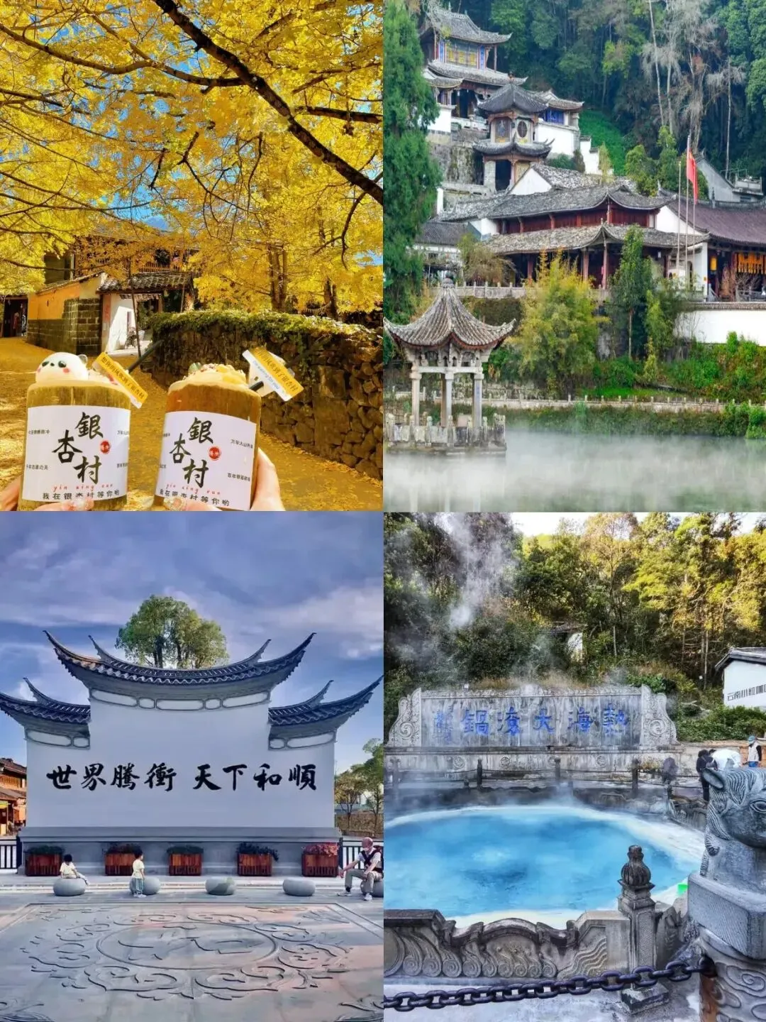 银杏村:因银杏树闻名的原始村庄,秋季时村落被金黄银杏叶覆盖,适合漫步、拍照,还可品尝银杏炖鸡等美食。