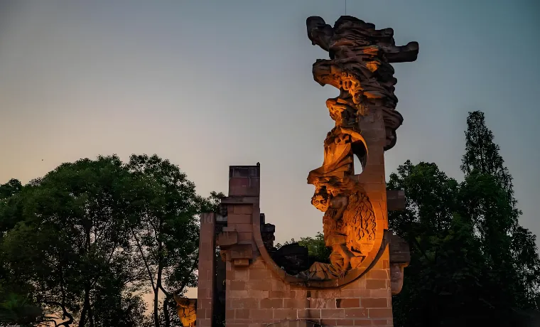 这绝对是被低估的艺术宝库。长达1000多米的石刻壁画,刻满自然生灵与巴蜀故事,橙红色巨型齿轮装置拍工业风大片绝了。这里的艺术感不输艺术馆,而且就在市区,晚上还有灯光秀,让石刻活了过来。本地人说“下班一半去吃面,一半来逛石刻”,烟火气直接拉满。逛完去旁边吃德阳干锅,绝配!