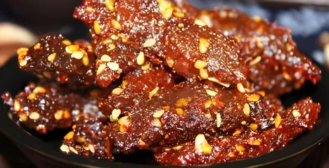又叫“裹汁牛肉”,是孝泉地方名特回民食品。具有麻、辣、香、酥及带有果味等特点。做法是以浓汁浇淋、包裹煮熟、卤好的牛肉,粘稠的麦芽糖把香料包裹在牛肉表面,让牛肉慢慢吸收精华。吃起来酥化渣,还有淡淡的果香。推荐去孝泉古镇的“果汁牛肉”老店买,现做的最好吃。