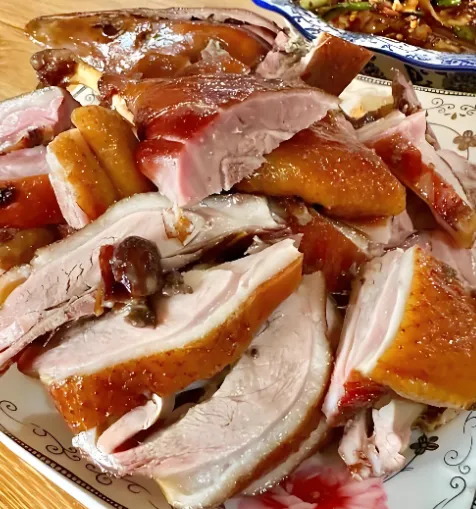 什邡市的传统名菜,分生板鸭和熟板鸭,都是腌卤食品中的精品。以其在晾晒和腌卤过程中,均采用竹骨绷撑,成品成板状而得名。北宋大文豪美食家苏东坡,从绵竹蒸蜜酒、取什邡鸭为佐,畅游长江作赤壁赋,留下佳话。肉质紧实,咸香适口,下饭神器。