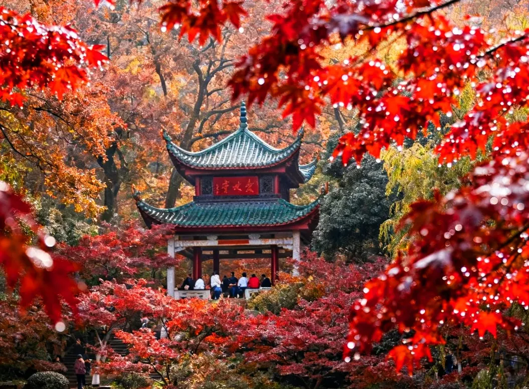 爱晚亭就在山里,小亭子不大,名字从杜牧诗里来,枫叶一红,手机像不要钱一样拍。