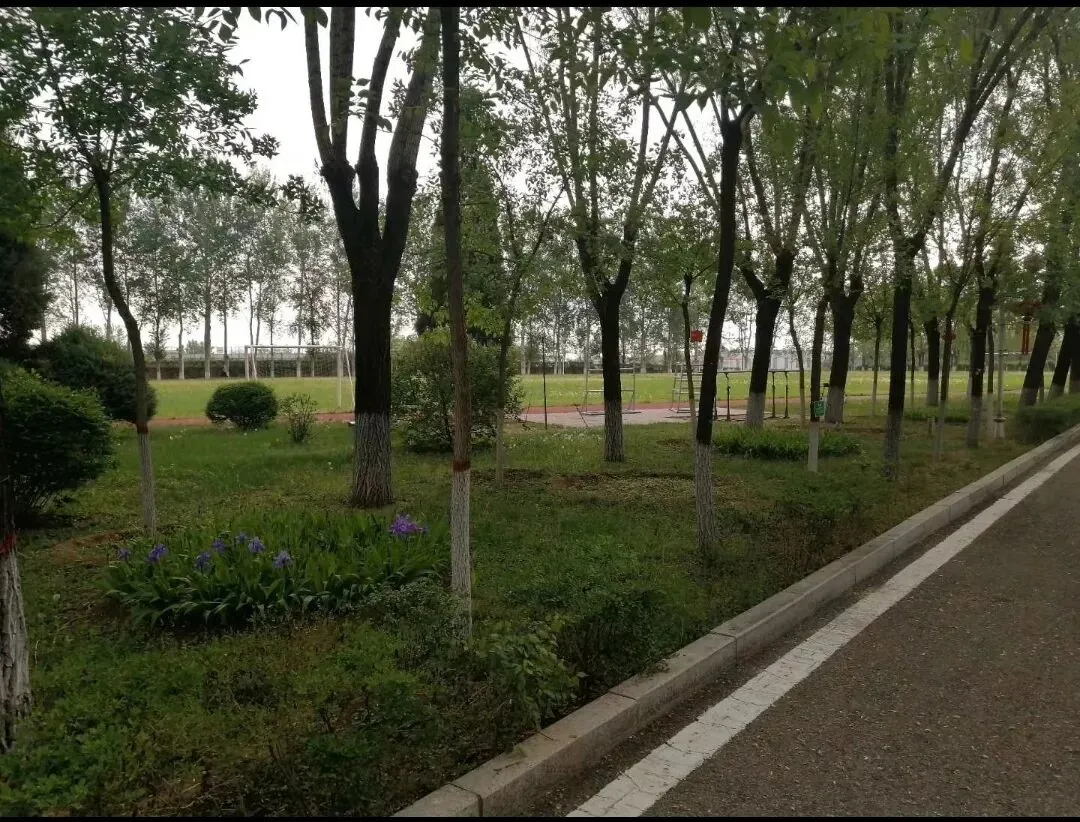 花卉亦是争奇斗艳:丰花月季率先绽放,引得连翘、芍药、西府海棠、珍珠梅、美人梅、合欢次第跟进,百花齐放,姹紫嫣红。金叶榆篱整齐排列,垂柳依依拂风,国槐枝繁叶茂,梓树挺拔向上,各类树木错落有致,相映成趣。