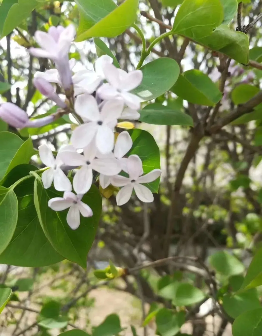 院内一条南北向平直大道,全长四百五十步,两侧丁香树成排,枝繁叶茂,我姑且称之为“丁香大道”。初春时节,丁香花次第绽放,一树树繁花如云似雪,娇艳动人,恰如你绽放时的笑颜。每到此时,大道上便热闹起来,有人驻足赏花,沉醉于沁人心脾的芬芳;有人缓步散步,享受着春日的静谧;还有人执着地寻找着五瓣丁香——传说中,丁香花多为四瓣,能寻得五瓣者,便会收获一整年的好运。