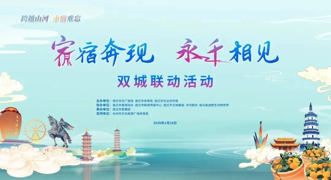 1月18日,“跨越山河 永宿难忘”宿迁—永州双城文旅联动推广活动在永州开启。活动现场,宿迁文旅宣传片、城市宣传片,全景展现了宿迁的历史底蕴与现代活力,让观众沉浸式感受宿迁的别样风情。项王故里、三台山国家森林公园、洋河酒厂文化旅游区、宿迁森迪野生动物世界进行文旅推介,互动热潮接连不断。
