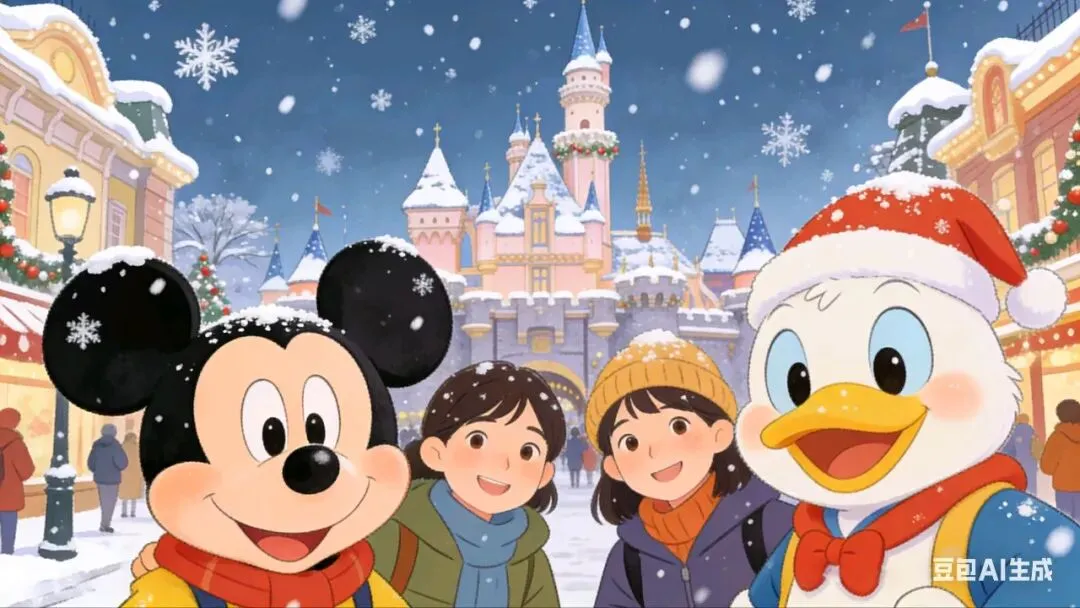 米奇大街的雪人玩偶憨态可掬,城堡前的“奇妙飞雪时刻”氛围感拉满。雪花与梦幻灯光交织,《疯狂动物城》的冰雕栩栩如生,夜晚的烟花在雪幕中绽放,满足所有童话想象。