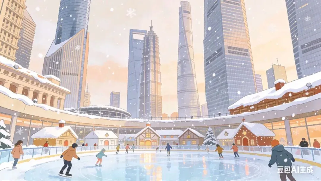 上海中心、环球金融中心等“三件套”直插雪云,1000平方米雪国小镇藏在陆家嘴中心下沉广场。傍晚亮灯后,温暖灯光映衬皑皑白雪,抬头是高楼雪景,低头是冰场欢腾,现代感与浪漫感双重暴击。