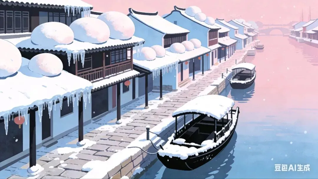 青石板路覆着薄雪,乌篷船划过结冰的水巷,大千天鹅湖庄园的千平真雪区宛如“上海阿勒泰”。落羽杉林积雪如棉,木屋顶堆着雪团,烤炉香气混着雪味,尽显江南水乡的静谧温柔。