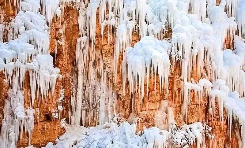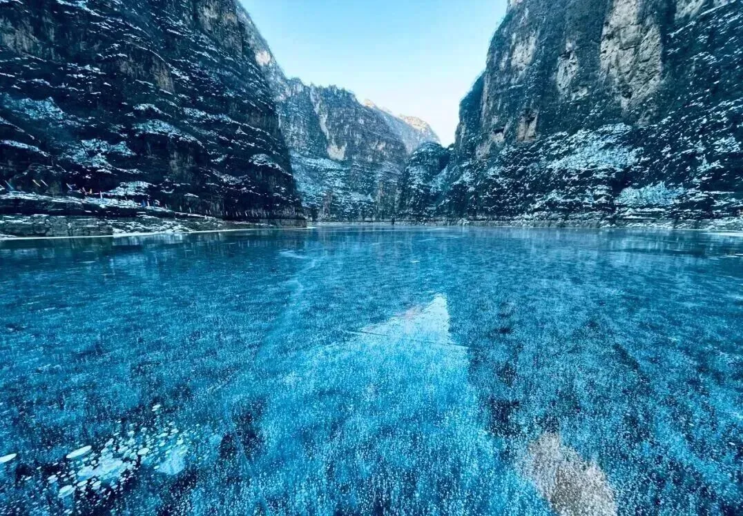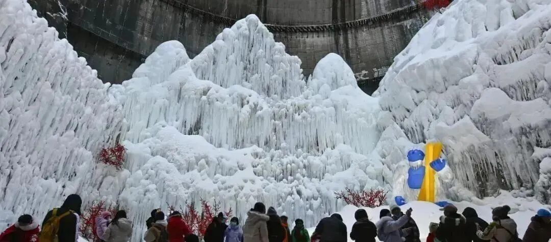 冰川峡谷区的 “气泡冰” 被游客誉为 “北京的贝加尔湖”,尽显原始蛮荒之美;而 70 米高水库大坝形成的巨型冰瀑,经人工修饰冰花、冰柱后,成为壮观的冰瀑景观,此外冰川飞瀑区还新增气膜灯与精品雪雕,让自然冰景和人工艺术进一步融合,提升视觉效果。