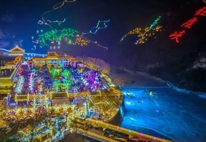 龙庆峡文化广场上还有精彩的非遗表演、综艺演出。如果玩饿了,可以去热闹的集市品尝各种美味的小吃。