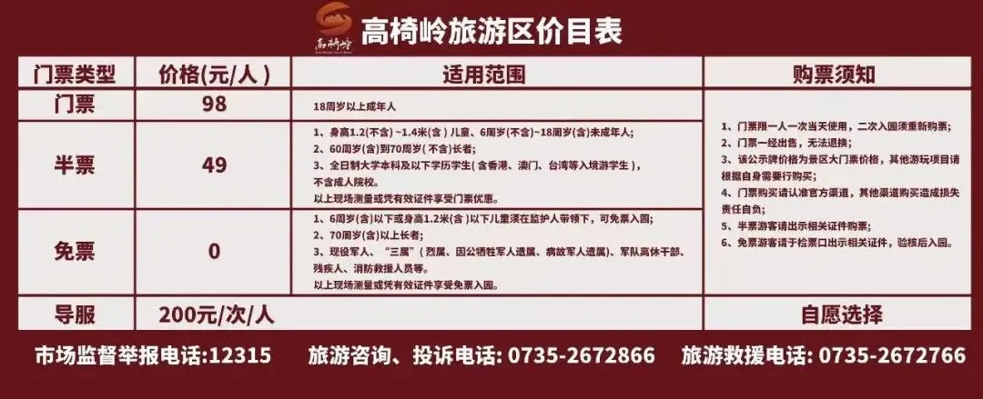 根据气象预警和上级有关部门指令,为确保大家游玩安全,高椅岭旅游区2026年1月21日实施临时闭园,具体复园时间另行通知。请随时关注景区通知,由此带来不便,敬请谅解。