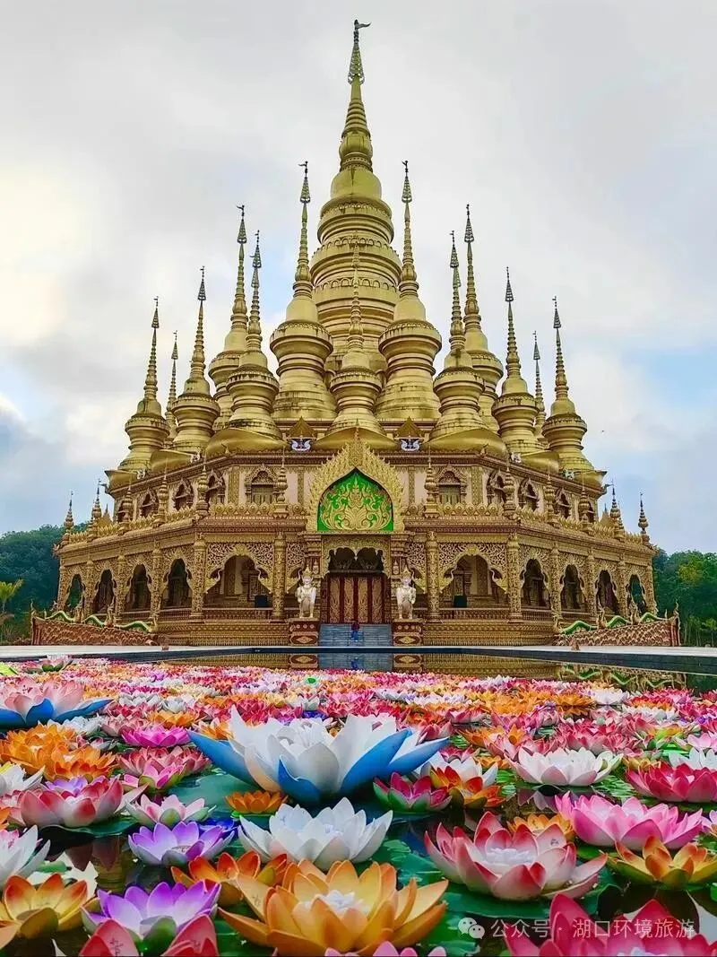 (含电瓶车费用 40 元/人);佛寺是在古代傣王朝的皇家寺院“景飘佛寺”的原址上恢复重建的,“景飘佛寺” 是傣族历史上一位傣王为纪念病故的王妃而修建,在这里欣赏美丽的傣族信仰小乘佛教的历史文化,参加【天天欢度泼水节】,场面壮观,亲自感受泼水节的欢乐与热情。随后前往般若寺网红打卡点。乘车抵达景洪后 ,晚餐体验团餐,入住指定酒店休息。