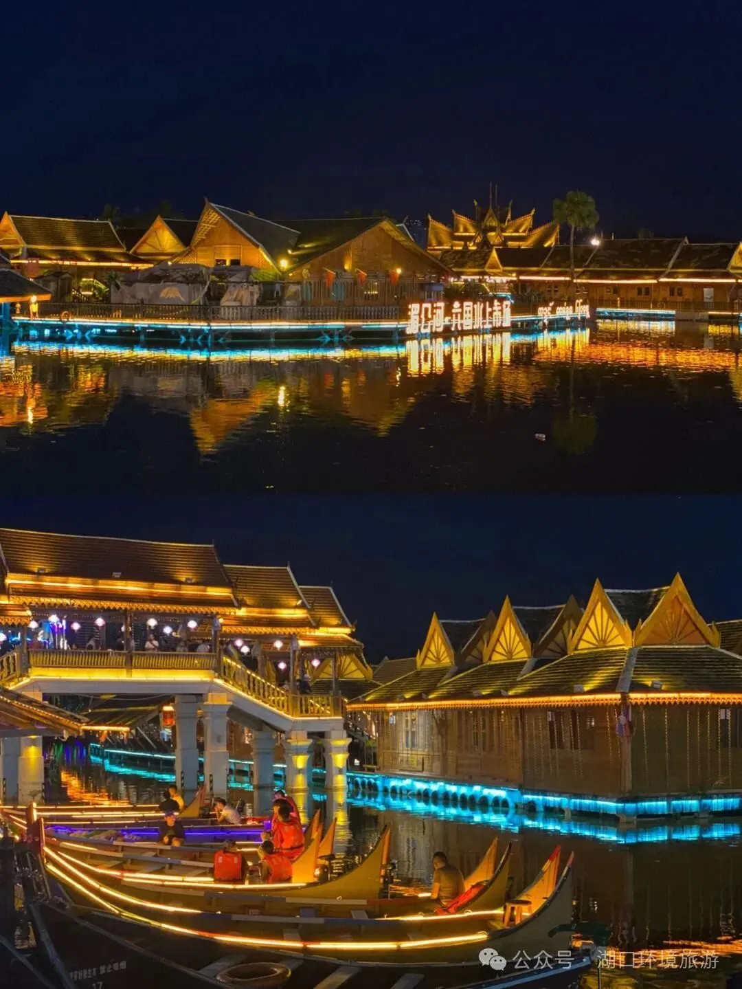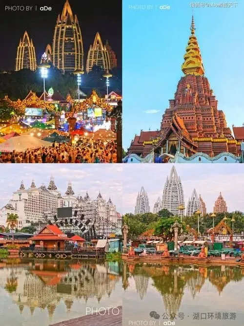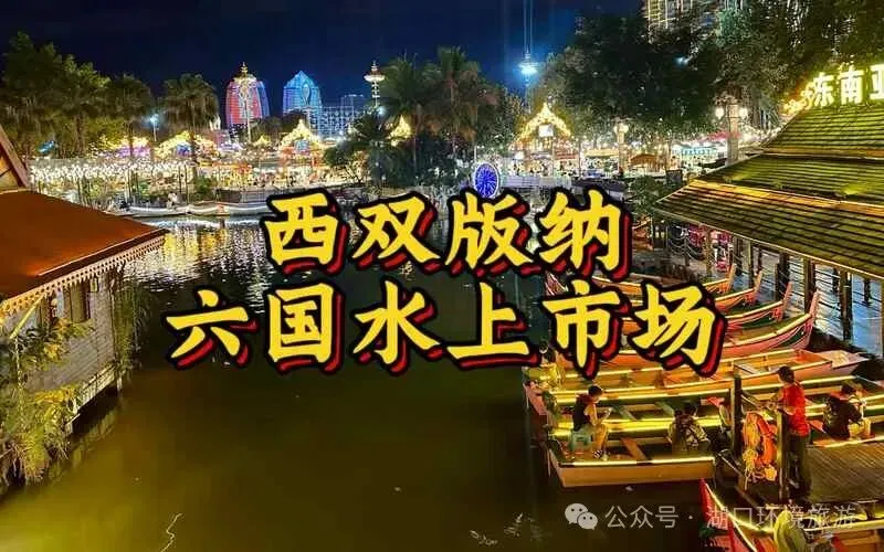 随后前往版纳网红打卡地——【告庄西双景】 【大金塔】 【星光夜市】 【六 国水上市场】是国内首例唯一一个具有东南亚风情的水上市场,让中国人不出国门,也能在 告庄体 验到真正的六国风情。 在景区景点游览时,请注意周围环境安全。