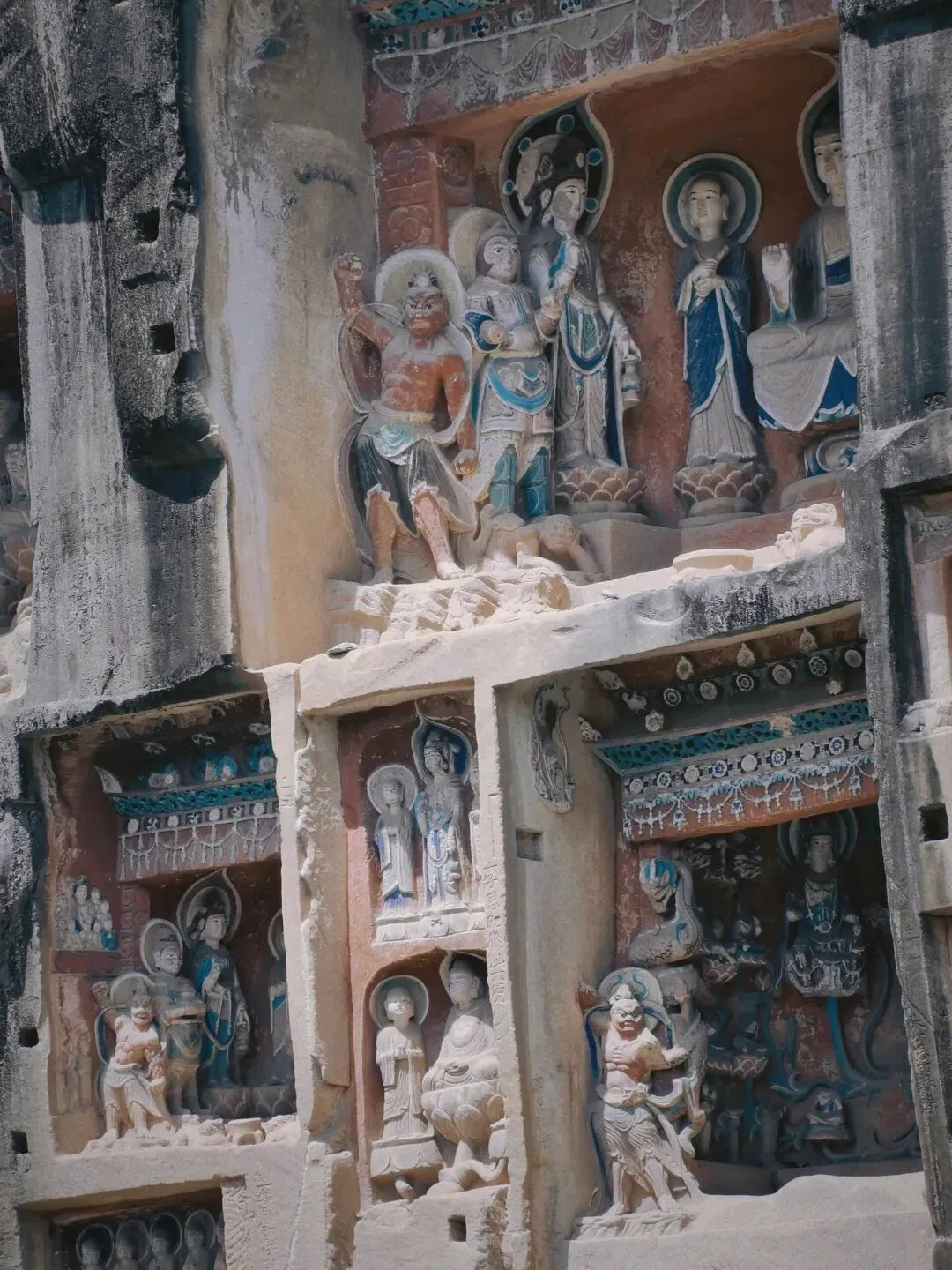 🌈🎭南龛摩崖造像群的石窟始于梁魏,续镌于隋代,盛镌于唐代即巴中南龛摩崖造像,简称南龛石窟,或称南龛坡。位于巴城南一公里的南龛坡山腹,岩石壁立,高十余丈,长数百尺,方正如削,列层分龛,镶佛累累,南龛造像,始创于隋,盛于唐,不断增镌,形成了规模宏大的石窟群。