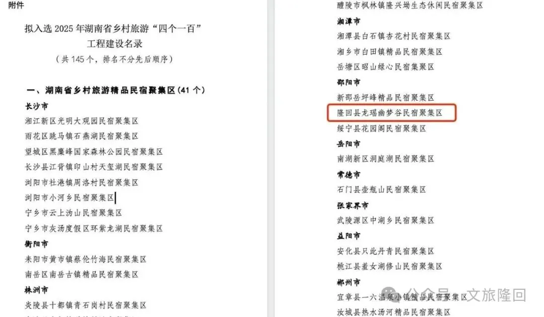 近日,湖南省文化和旅游厅公布了《2025年湖南省乡村旅游“四个一百”工程建设名录》,隆回县虎形山瑶族乡草原村、龙瑶幽梦谷民宿聚集区分别入选“湖南省乡村旅游精品村”和“湖南省乡村旅游精品民宿聚集区”,为当地文旅融合发展与乡村振兴再添省级名片。