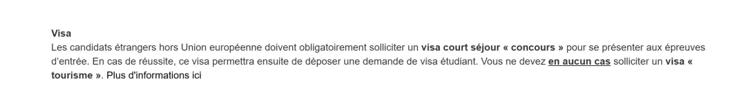 很多童鞋认为 “都是短期赴法,旅游签办起来简单易用、风险小”,于是就选择了短期旅游签证的申请。殊不知,在今年两间国立高等的报名须知里均明确指出,非欧盟考生赴法参加考试,须申请“考试签证”!