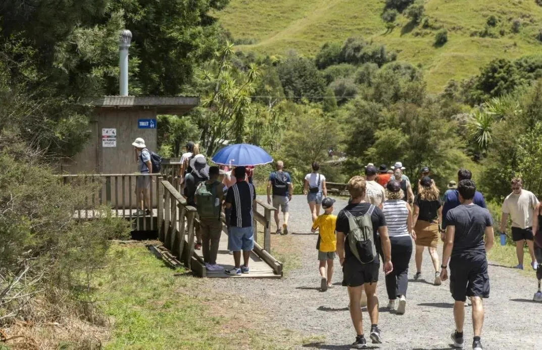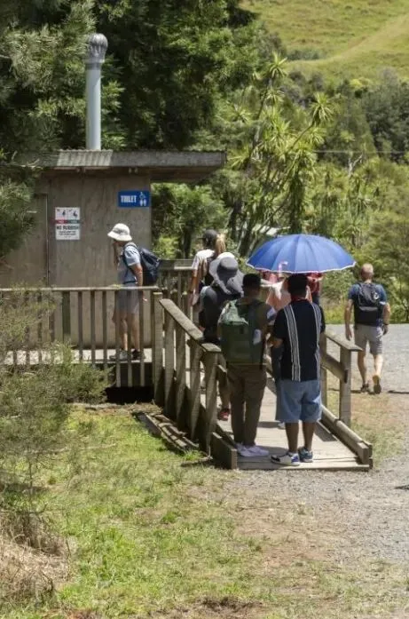 近日,Waikato Times记者走访蓝泉步道时看到:在距离泉水体约20米处,那座唯一的堆肥式旱厕门口,排着长队。